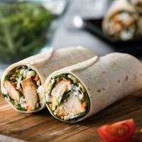 Тортилья, куриная грудка, листья салата, томаты, красный лук под соусом Цезарь.