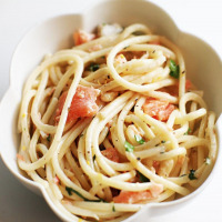 Паста с лососем, лососевой икрой под сливочным соусом и тертым сыром Пармезан