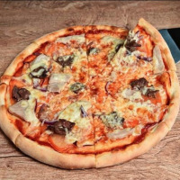Пицца с сочной куриной грудкой, шампиньонами, спелыми томатами, маринованными огурчиками, маслинами и зеленью под сыром Моцарелла