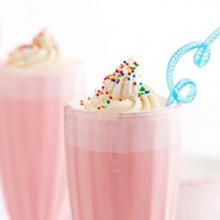 Песочное печенье, персиковый сок, молоко, сироп, взбитые сливки